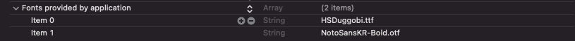 폰트가 추가 되었다면 Copy Bundle Resources 목록 내에도 폰트 파일이 추가되었을 것이다.