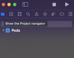 프로젝트를 열었으면, 왼쪽 상단의 폴더 아이콘을 클릭하여 Project navigator를 본다.