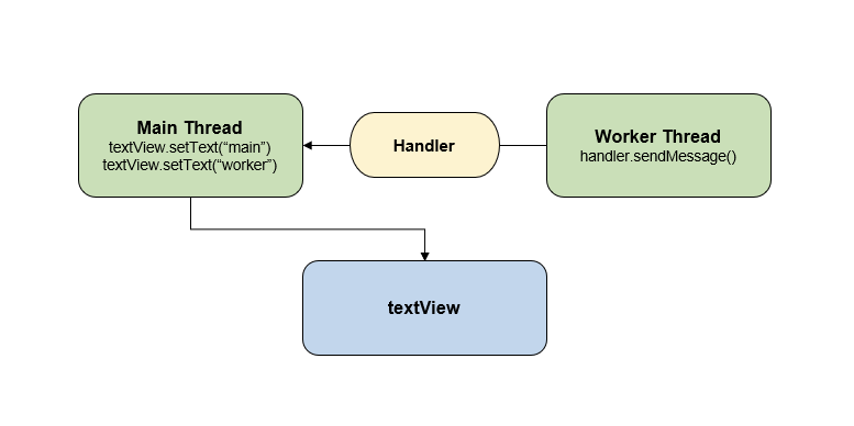 그림과 같이 워커 스레드와 메인 스레드 간 해야할 일을 Handler를 통해 공유한다.