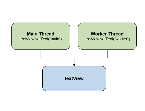 동시에 워커 스레드도 한 가지 textView에 setText()를 하려고 한다고 가정하자.
