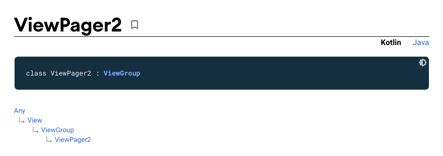 ViewPager2가 ViewGroup으로부터 상속된 것을 보면, Container 역할을 한다는 사실을 유추해낼 수 있다.