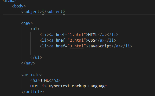 예를 들면 위와 같은 것이다. 정말 긴 <header>태그와 그 내용이 있다고 하고, 그것에 따로 이름을 붙여 <subject>라는 태그로 대체한다고 하자.