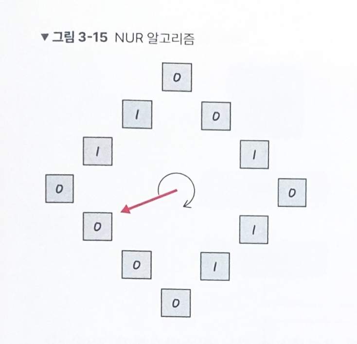 최근에 사용한 적이 없는 페이지를 스왑 영역으로 보내는 알고리즘.