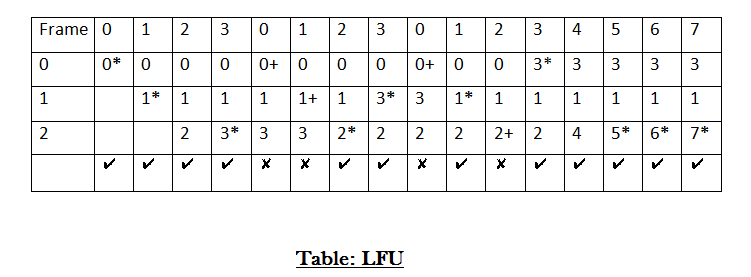 가장 참조 횟수가 적은 페이지를 교체한다.