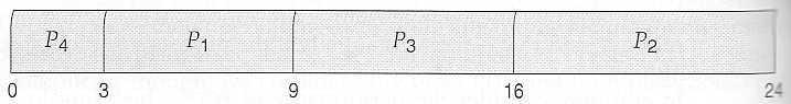가장 실행 시간이 짧은 P4가 실행되고 그 다음 순으로 P1, P3, P2가 실행된다.