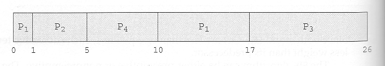 P1의 실행 시간은 24인데 4ms 사용할 수 있으므로 실행하다가 쫓겨난다.