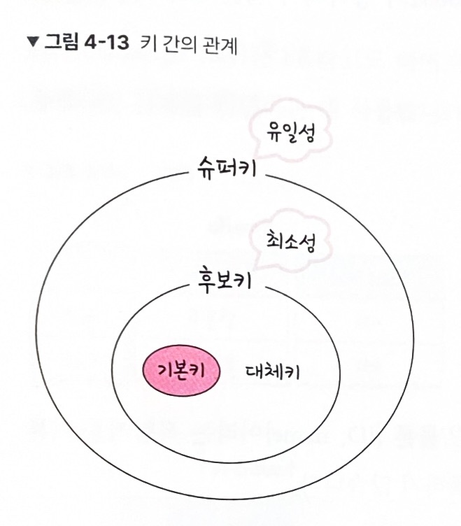 슈퍼키는 릴레이션을 구성하는 모든 튜플에 대해 유일성은 만족하지만 최소성은 만족하지 못한다.