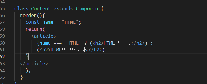 조건이 true 라면 && 다음에 오는 요소가 나온다. 만약 조건이 false 라면, React는 이를 무시하고 건너뛴다.